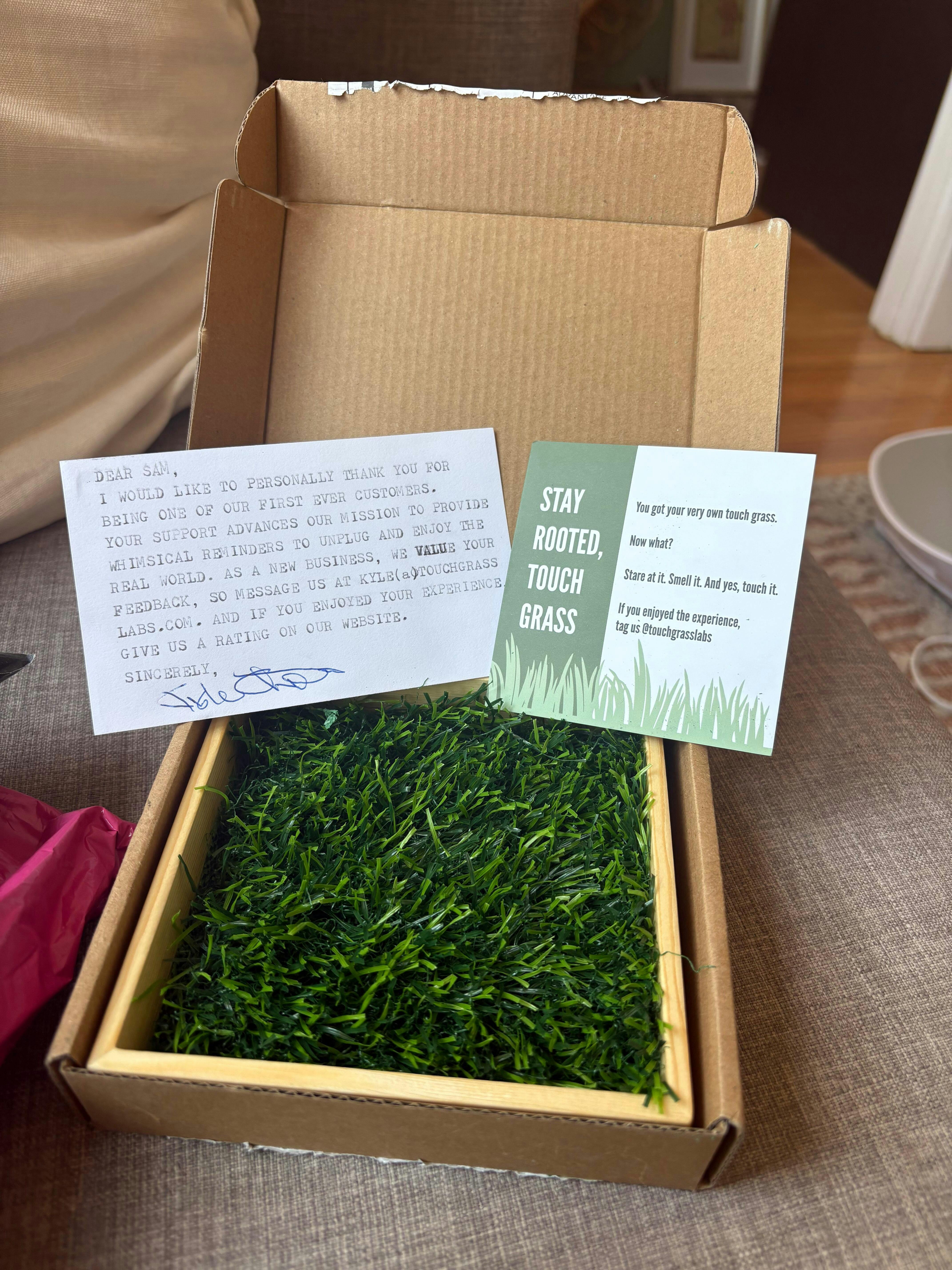 Just got my grass today! It’s very well made and fun to touch. It’ll sit on my desk to remind me to unplug more often! I’ll definitely be visiting the shop again when holidays come around as such an easy gift for coworkers.